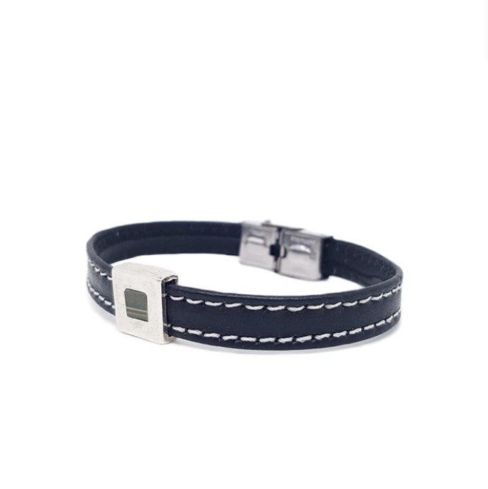 Svart lærarmbånd (17 cm) med en perle av sølv innlagt med Det nye testamente